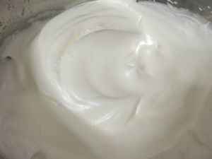 分三次将60g白砂糖加入蛋白将蛋白打发至九分