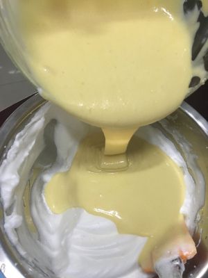 将蛋黄糊倒入剩下来的三分之二的蛋白霜中 拌匀
