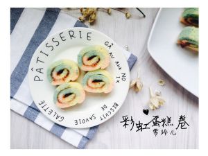 取出倒扣在另一张油纸上 并揭下底层油纸 翻面 抹上奶油或者其他果酱 用竹帘或擀面杖卷起来 我是直接动手卷的