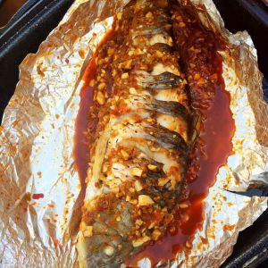 把鱼放在锡纸上,酱均匀的抹在鱼上