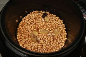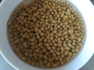 用了米饭量杯的一杯半黄豆,洗干净,用水浸泡大概两个小时吧,用高压锅的话不泡也可以。