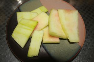 准备西瓜皮,把红瓤的一面全部切掉,外边的皮也去掉。