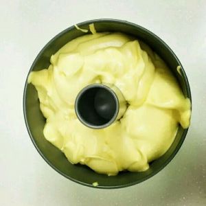 轻轻震动使面糊分布均匀(如果只有平底活底模具也没关系)