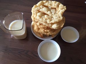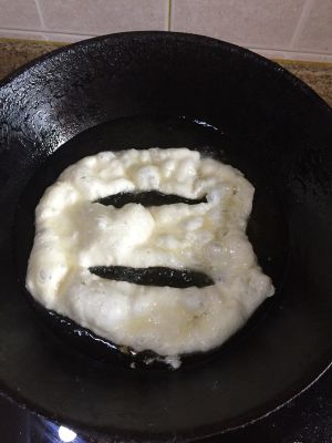 准备好的一大锅油油温一定要高,然后把油饼放进去开炸,大概十秒钟翻面就可以了
