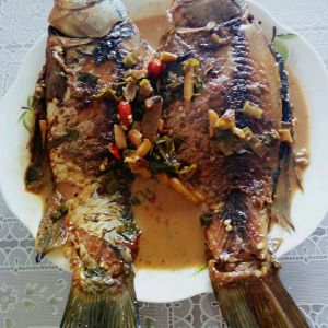 锅内放油,大火烧辣后将鱼放入煎,煎至两面金黄就可以了。