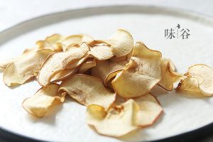 烤好的苹果片放凉自然就脆了,平时当做零嘴也是不错的哦。(如果苹果片冷却后还是软 的,说明水分没有完全烘干,需要放入烤箱继续烘干。)