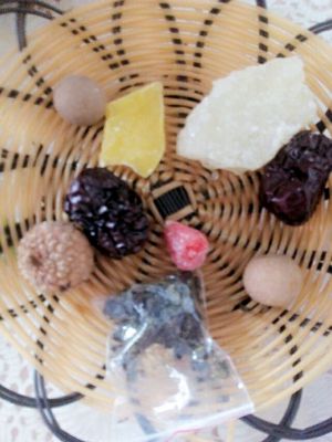 将八宝倒入水壶,(可以放些冰糖哦)倒入开水。