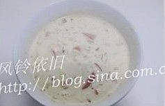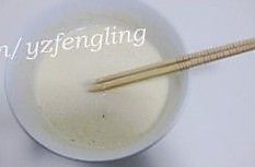 鸡蛋打入碗中,加牛奶、面粉、少许盐调成略稠的面糊,醒五分钟