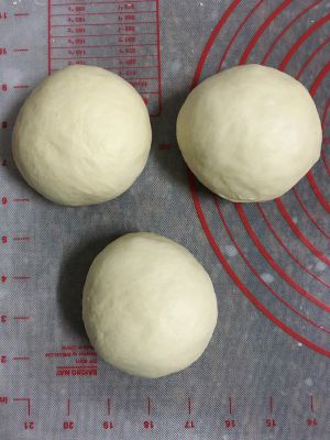 发酵好了 拿出排气 分割成等量的两份 滚圆 盖上保鲜膜 松弛十五分钟 忘记拍照 用以前的图咯