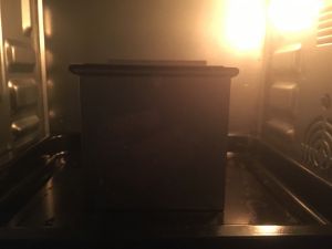 放进微波炉里进行二发 旁边放碗烫水 帮助发酵 发酵到九分满 就可以盖盖放入预热好的烤箱了