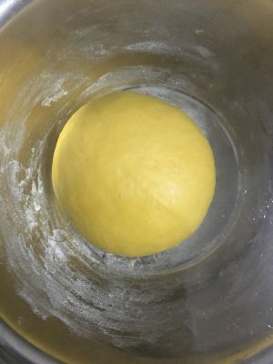 高粉 奶粉 糖 酵母混合 加入蛋液 慢慢加入胡萝卜牛奶汁 揉成团