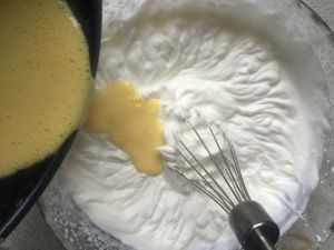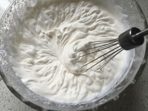 淡奶油倒入干净无水无油的大碗中,加入细砂糖打发至6分的湿性发泡。