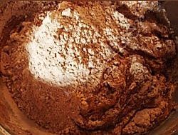 将低筋面粉、可可粉过筛后,加入巧克力糊中切拌均匀;