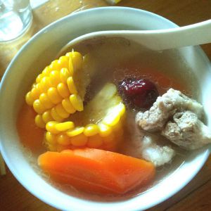 排骨炖一个小时之后,把玉米先放进去小火炖半小时,之后放胡萝卜炖半小时。就可以了!