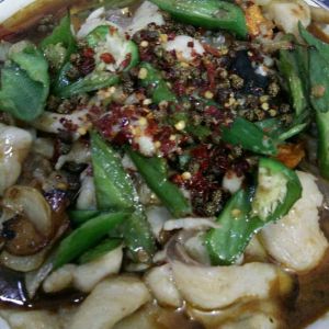 葱打结,姜切片,蒜子切片,青椒切滚刀(忘拍照了)。
