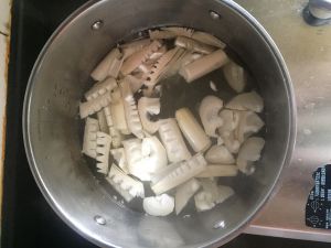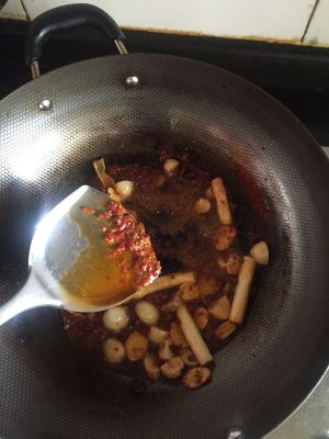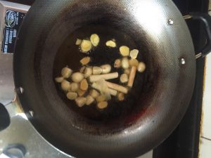 热锅冷油,待油烧热后放入姜蒜䓤白小火煸出香味