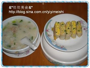配上以为鸡肉青菜粥,就是一顿美味的早餐啦: