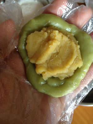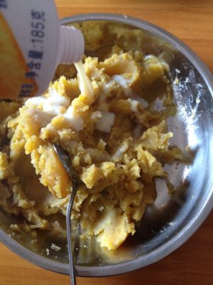 红薯蒸熟捣成泥,按自己喜好加入适量练奶搅拌均匀,做馅