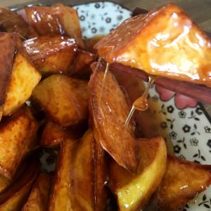 地瓜炸至金黄或用筷子能戳动里面的心为准,因为在家里为了省油我就没有没过地瓜,火有点大