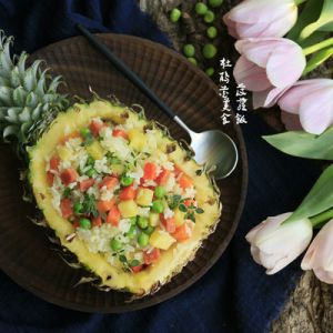 将炒好的饭在装入菠萝里就可以开吃啦!。