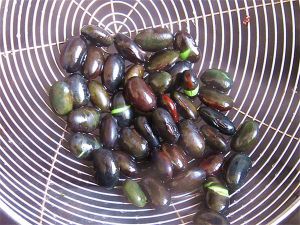 青豆、黑豆泡发后下锅煮烂,加点盐腌制一下,扁豆角切成丝用开水焯熟去生