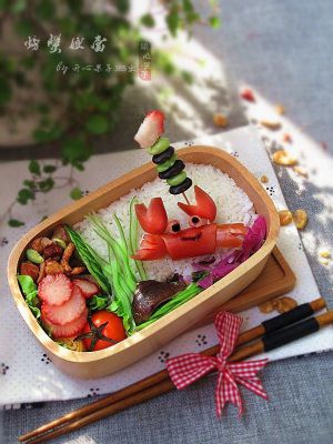 可爱的小螃蟹便当做出来了,需要带出远行的话,饭盒食材不要放得太满,可以外形避免压扁