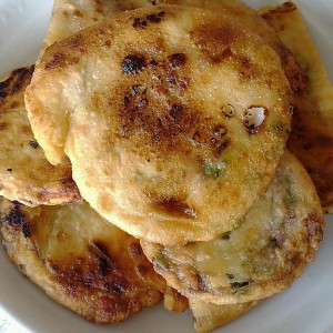 擀成长方形上面抹上肉末~盐~葱花~油少许