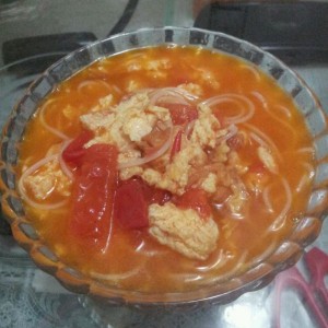 鸡蛋打成蛋液,西红柿切小块,紫菜撕碎。锅内倒少许食用油,油烧热到合适温度后将鸡蛋液倒入,进行翻炒大约两三分钟,然后直接倒入西红柿再翻炒两三分钟,加水。待水开后下入面条,面条七成熟时加入紫菜和虾仁(或虾皮),即可。