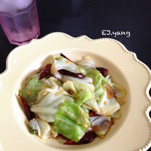倒入圆白菜爆炒半分钟,加盐,蚝油,醋炒至圆白菜变软即可。(糖随自己喜欢放多少。我不爱吃甜的,所以就省略了。)