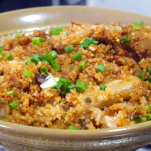 水开记时,中火蒸一个半小时就熟透了,出锅前趁热撒上小葱花,香喷喷的粉蒸肉就做好了;