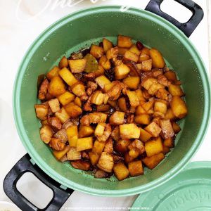 加入适量的水,盖上锅盖焖15分钟。最后倒入土豆丁再煮15分钟。