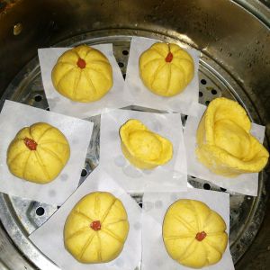 大晚上的,我没买到油垫纸,所以用笔记本的纸代替。上锅大火蒸十分钟即可完成。