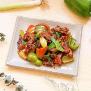 肉香而不腻,蒜苗提鲜和青椒的微甜,