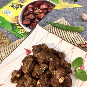 平底锅下烧热下入少量油,把排骨稍微煎至金黄色。