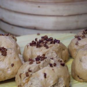 然后把红糖水倒入面粉中,搅拌成面絮状