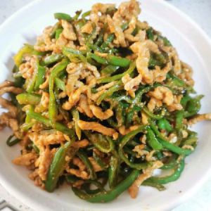 另起锅烧油加入葱姜蒜末,炒香,加入豆瓣酱炒出红油加入肉丝然后翻炒均匀再加入青椒翻炒加入生抽,老抽,微盐。快速翻炒均匀。中间步骤由于缺少一些照片不好意思下次改进。