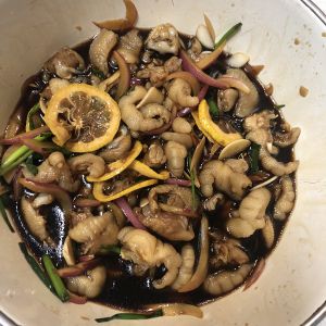 我买的速冻无骨鸡爪,泡水洗干净切成两块