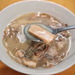 时间长点短点都没关系。我等着做,只泡了二十来分钟。泡时间短,墨鱼身体的盐份还有很多,后面汤里面注意不要加多了盐
