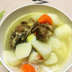 羊蝎子开水煮一下,去除血水,洗净备用~