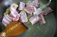 将排骨用清水+葱姜水浸泡约半个钟,血腥水浸出来后需要多次换水;