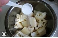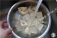 腌制约半个钟后,将藕块放水龙头下清水冲洗掉盐分;