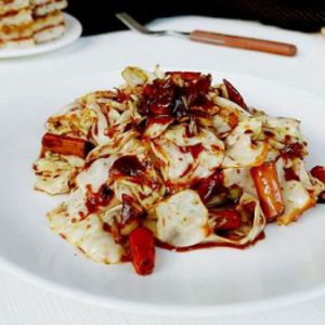 卷心菜本菜是清清爽爽嘎嘣脆的,外头存在感很强的汁是甜咸油润带一丢丢辣的