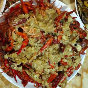 虾子炒一两分钟过后再倒入姜末,和蒜末,这样可以避免蒜炒干了,并且这样的蒜蓉味更重,然后依次倒上一点香油,耗油,撒点白糖,然后黑胡椒,盐,鸡精,料酒少许等常规调味料,翻炒两三分钟,《注意一定不要让蒜焦了就不好吃了,就会苦》倒入啤酒,闷个五六分钟到虾子熟后就可以入盘了!