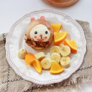裱花嘴切出兔子白眼睛黑眼睛,粘合起来,粘在兔子的脸上
