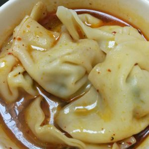 水开下锅,新鲜的抄手煮不到多久,浮在水面再煮一两分钟即可出锅!先舀一勺汤把碗里的调料混合,再捞入抄手即可开动了!