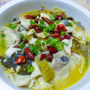 炒锅烧热,倒入食用油,下姜片蒜片干辣椒爆香,倒入鱼头鱼骨炒至表面变黄,然后把切好的酸菜(包括买的袋装那种还有自家泡的萝卜泡椒等)下锅一起翻炒一会儿,加入适量水中火煮20分钟。