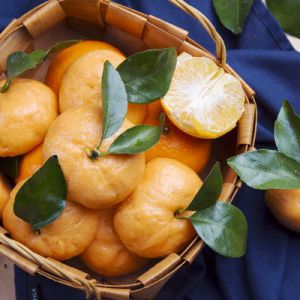 蒸好之后取出来,插上橘子叶,我们的桔子馒头就完成了。