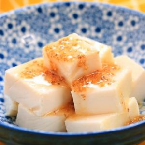 最后切成小块点上桂花酿,杏仁豆腐就完成啦