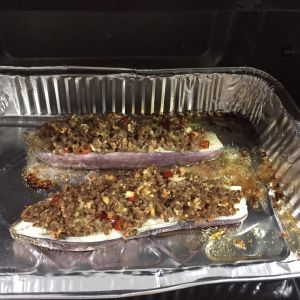 弄好的茄子放进烤箱,上下火220度,放在中层烤15分钟。烤箱要记得提前预热哦。