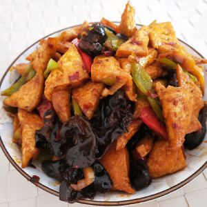 再起锅,放入适量油,放入一勺郫县豆瓣酱进行翻炒,炒出红油,放入葱蒜炒香后放入青红椒,木耳,放入少量盐,酱油,耗油,糖,鸡精,不断翻炒,断生后放入豆腐继续翻炒,怕糊放入一丢丢水,炒至豆腐入味即可